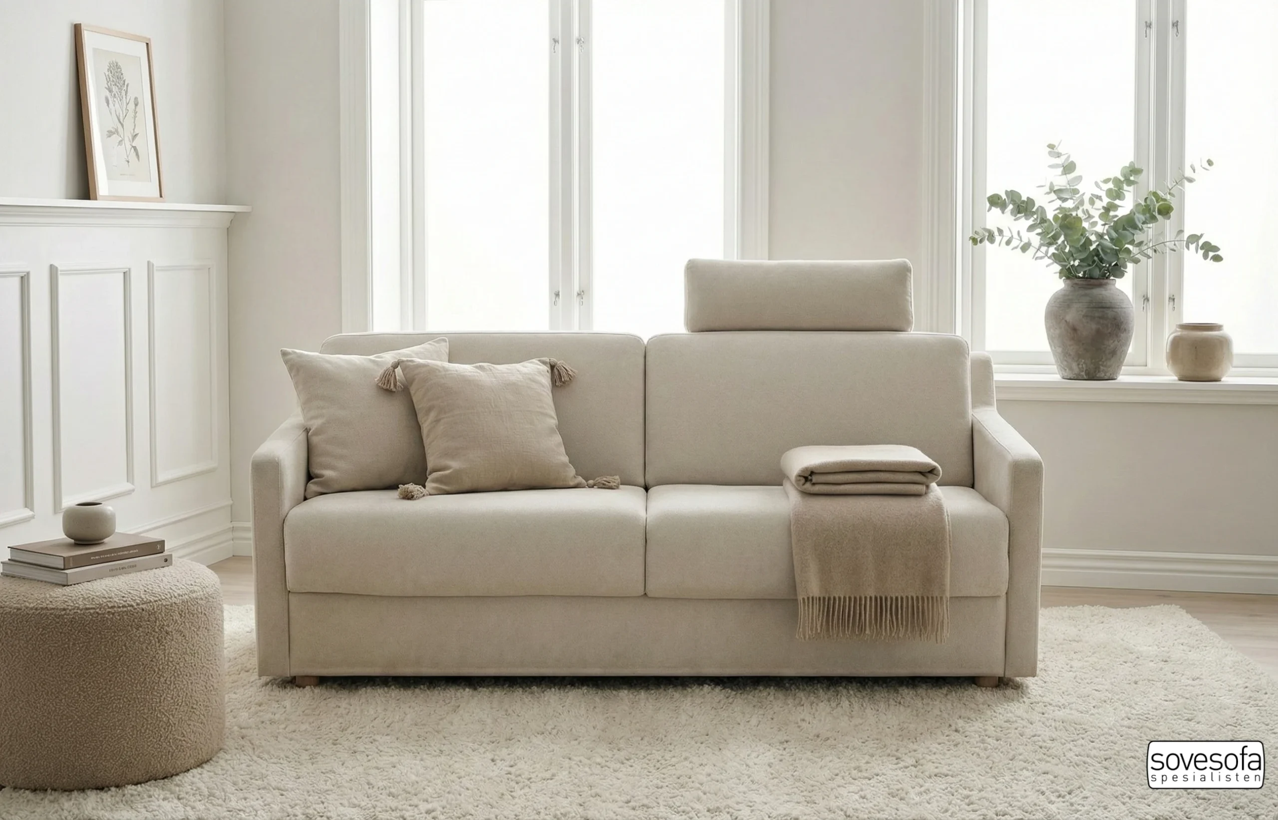 Sofaen er utstyrt med formskårede puter i kaldskum som sørger for at sittekomforten er medium til myk, samtidig som putene holder fasongen i mange år. Mekanismen er robust og kan slås ut i én enkel bevegelse uten at du trenger å fjerne putene først. Dette er et solid møbel for deg som trenger en skikkelig seng og en behagelig sofa i ett.